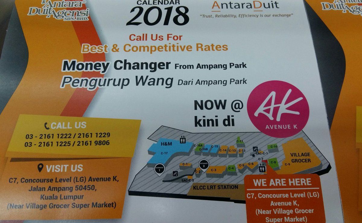 Antaraduit money changer has moved to avenue k mall, c7 , concourse level, jalan ampang, 50450 kuala lumpur, wilayah persekutuan kuala lumpur ].
